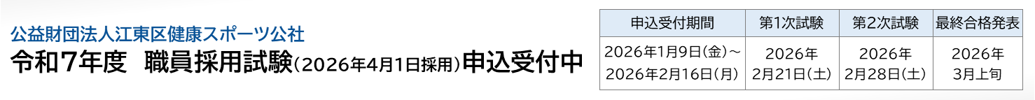 江東区スポーツ会館は、区の長期計画に基づく改修工事のため令和6年10月1日から令和8年3月末(予定)まで全館休館しています。